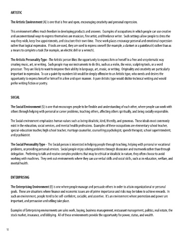 opportunity to express herself or himself in a free and open manner. A pure Artistic type would dislike technical writing and would
