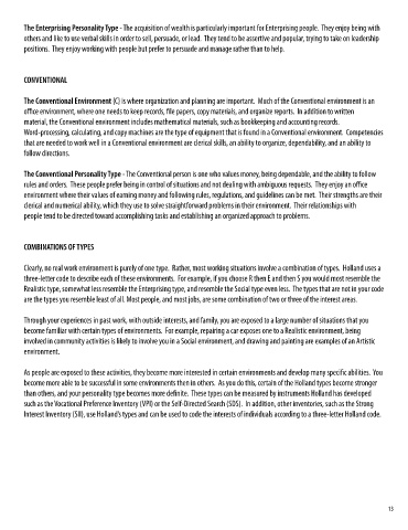 than others, and your personality type becomes more definite. These types can be measured by instruments Holland has developed