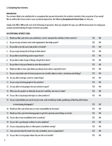 like to confirm the choices made in your vocational exploration, the following Occupational Interest Quiz can help you.