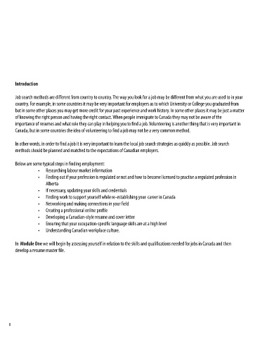 In Module One we will begin by assessing yourself in relation to the skills and qualifications needed for jobs in Canada and then